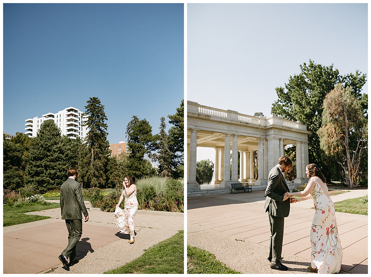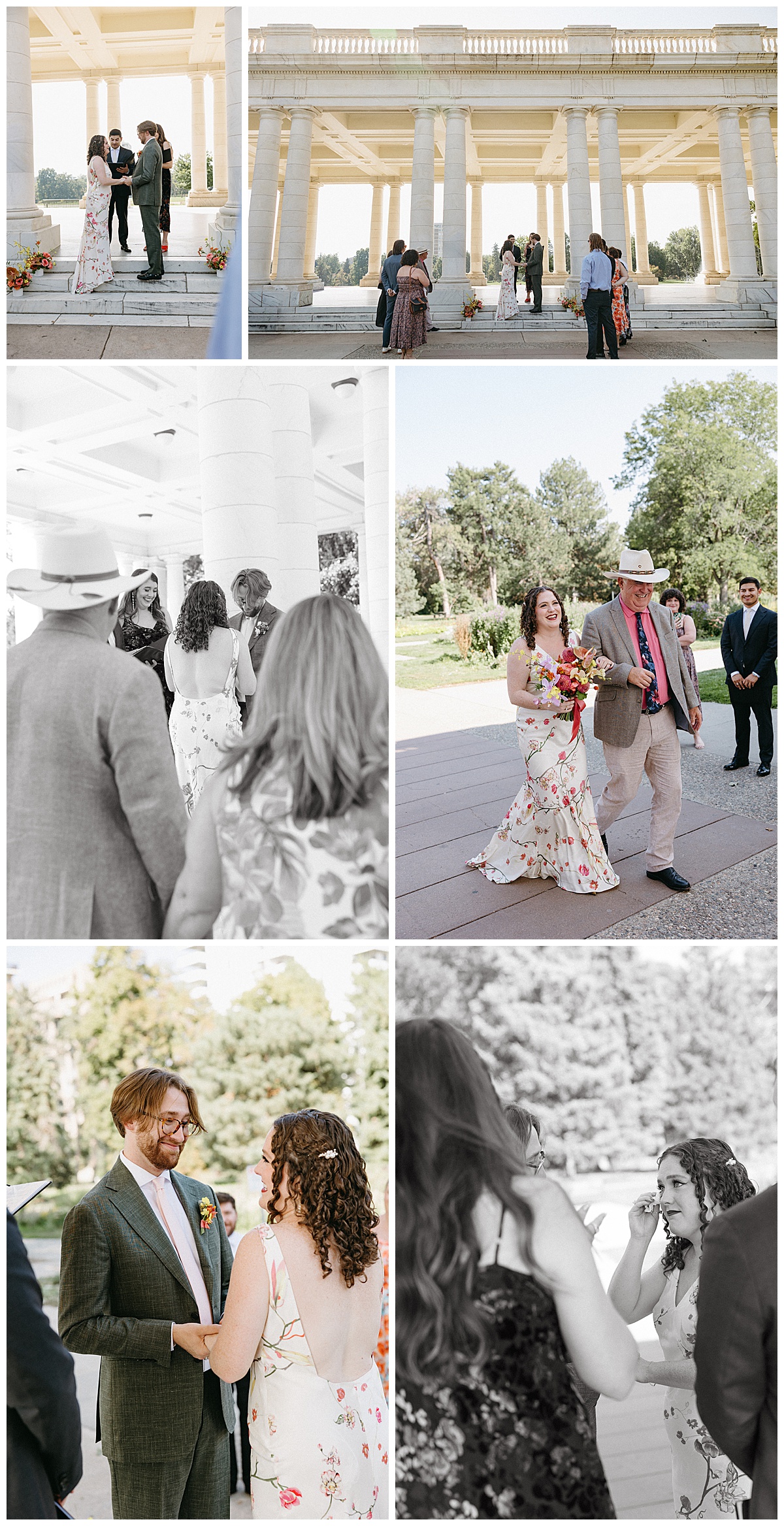A Cheesman Park wedding gives you a backdrop that feels elevated without needing anything over the top. These two didn’t need chairs for their small group, but for a larger ceremony you could totally set up some chairs inside the pavilion.