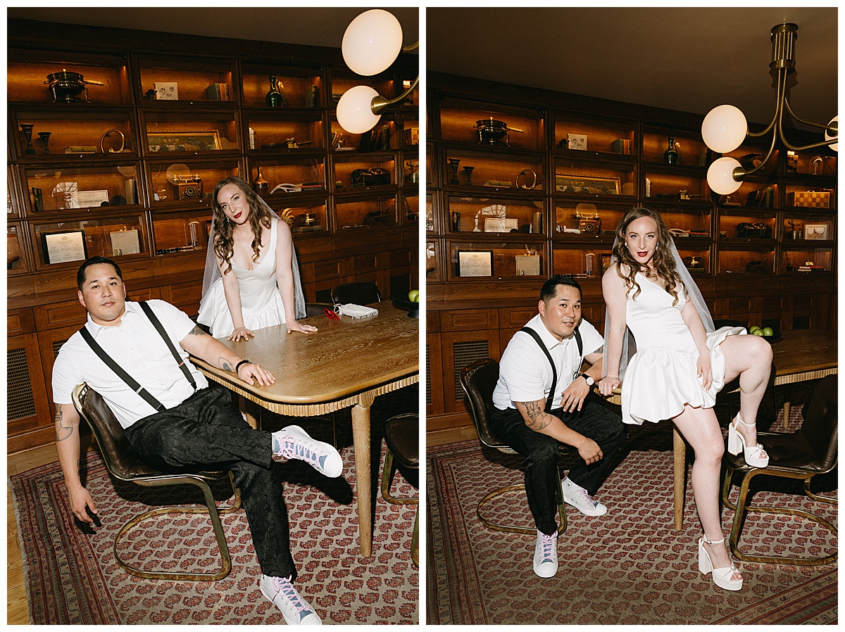 After playing around in the post office, we went back to the hotel for more pictures, really leaning into the courthouse elopement meets fashion week situation. Just look how cute it is!