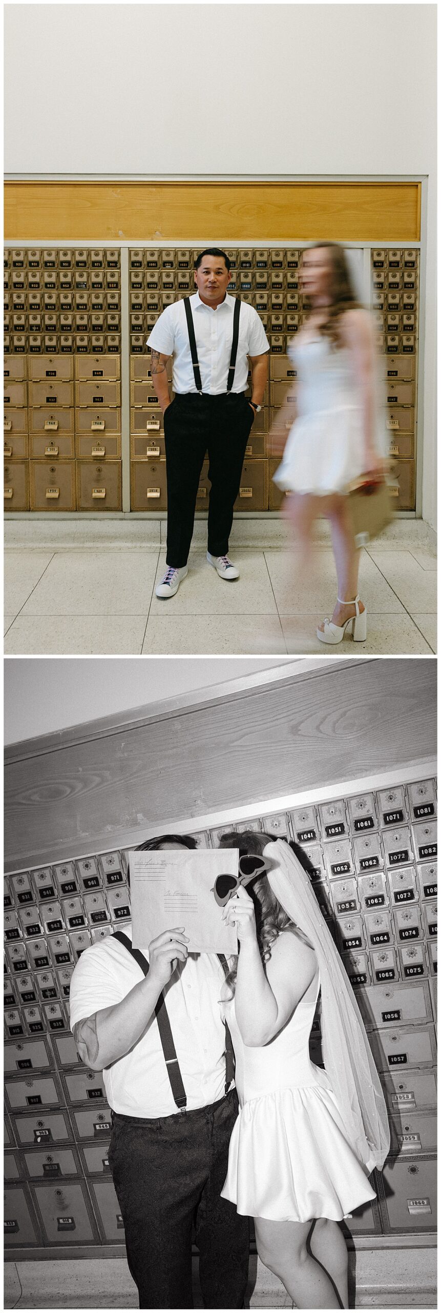 I met these two a couple hours before their actual ceremony at the post office across from their hotel, the Mining Exchange. The post office is adorable, and they really wanted photos there to capture the vibes of the day.