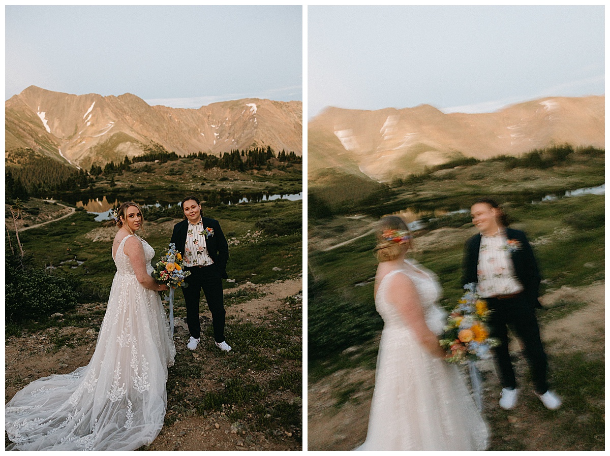 This elopement was in July, so the sun stayed out pretty late for us. Summer is a beautiful time up in the mountains with all the wildflowers blooming, but the weather can be unpredictable. You’ll need to be mentally prepared to roll with a plan B.